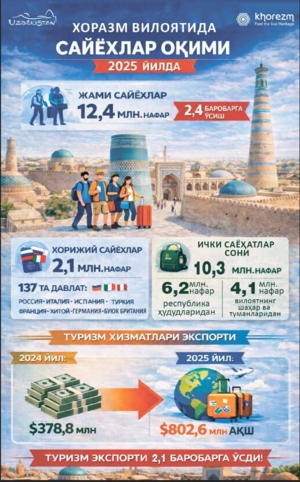 Xorazm viloyati: 2025-yil turizm sohasida muhim natijalar