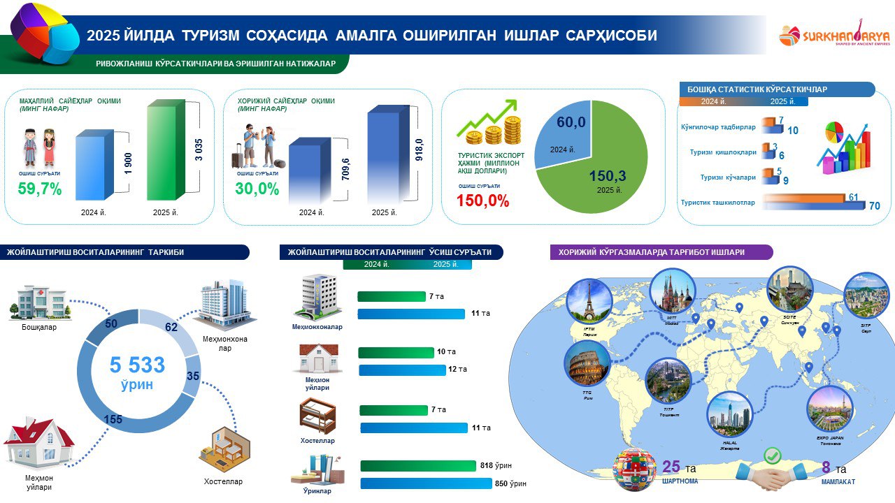 Sarhisob-2025: Surxondaryoda turizm sohasida amalga oshirilgan ishlar va erishilgan natijalar